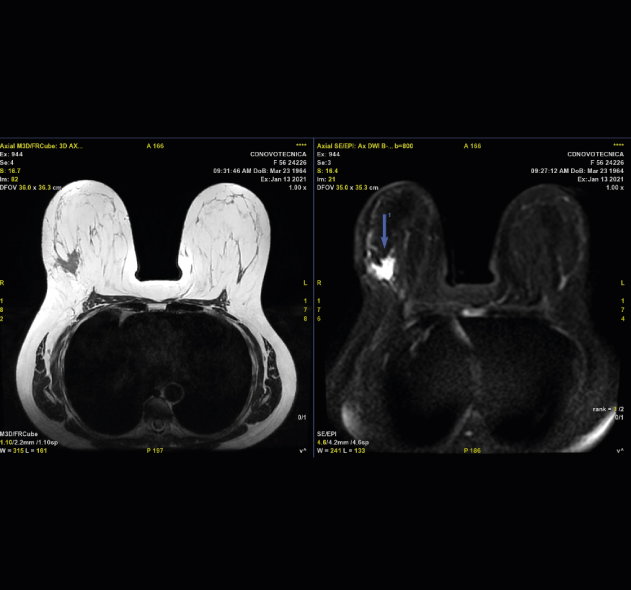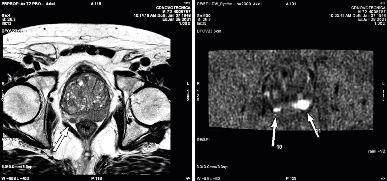 Con este estudio podemos valorar no sólo una lesión sospechosa de malignidad en la glándula prostática, sino si existe afectación de estructuras adyacente o extensión a ganglios y hueso. Disponemos de una herramienta avanzada para realizar el informe del estudio de próstata, que facilita un mapa de la lesión, así como sus características, facilitando la localización exacta para posteriormente realizar su biopsia.