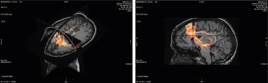 Mediante unos mapas de colores la difusión permite realizar una tractografía permitiendo valorar especialmente los tractos de sustancia blanca a nivel cerebral y realizar un mapa de la red de fibras nerviosas. Entre sus aplicaciones fundamentalmente permite valorar isquemia cerebral, enfermedades desmielinizantes, epilepsia, patología tumoral y se está empezando a estudiar en demencias y trastornos neurodegenerativos.